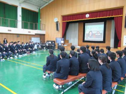 今日はお昼から新入生を迎える会があり,生活産業科の2,3年生が挨拶や職員室の入り方など学校生活上のルールの紹介がありました。自分から,場に応じた声で挨拶することなど先輩らしい見本を披露してくれました。会の最後は,中学部3年生生徒会副委員長の挨拶がありました。そのあとは,部活動紹介があり,鳴滝の部活動の内容を上級生が伝えてくれました。部活動に入って,鳴滝での学校生活を更に充実したものにしていきましょう。そして,夢や希望に向かって頑張っていきましょう。