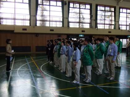 何時起こるかもわからない地震に対しては、避難の方法などをしっかりと学んでおく必要があります。寒い中ではありましたが、生徒たちは真剣に避難訓練に取り組みました。