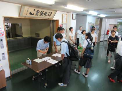 本日,実質は2回目のオープンキャンパスを実施いたしました。本日もたくさんの中学生・過年度生の皆さんに来ていただきました。鳴滝では,皆さんに鳴滝のことを知っていただくために,生徒も教員も頑張っています。今年度からは,受付についても本校の生徒が担当してくれています。案内係としても練習をして,皆さんにより鳴滝を知っていただけるようにしています。中学生の皆さんは自分に合った進路決定に向けてオープンキャンパスに臨んでいると思います。まだまだ,オープンキャンパスの申し込みを受け付けておりますので,ぜひ,一度鳴滝のお越しください。お待ちしております。