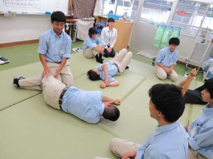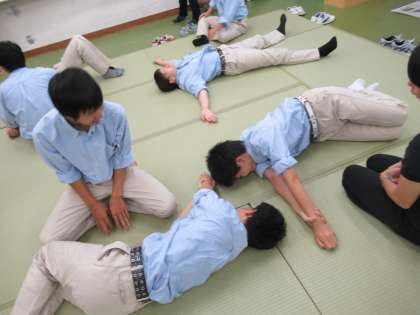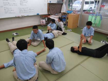 今日の福祉の授業では,朝から畳を敷いていました。畳をタオルで拭いた後,福祉介護の授業で畳を使って何をするのでしょうか。