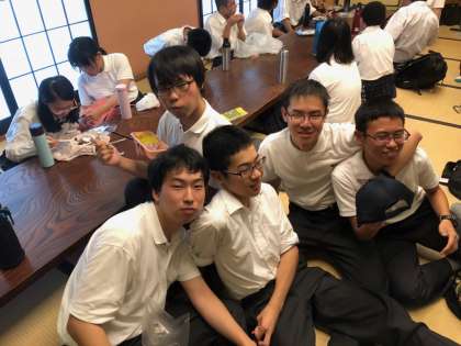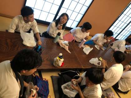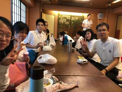 お昼になり,今晩泊まる宿「貞千代」に到着しました。暑いので,貞千代さんの宴会場で昼食をとりました。これから浅草方面へ行きます。