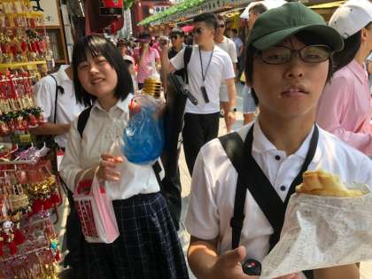 昼食を終えて,浅草方面へ。浅草寺周辺を散策しています。