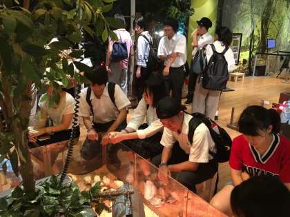 オービィ横浜で活動しました。オービィ横浜はデジタル映像の大自然とリアル動物を調和させた体感型の施設です。動物たちと触れ合っています。