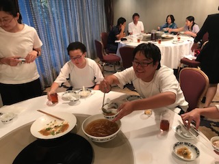 ホテルに到着し,自由時間,休憩をとりました。6時20分からは夕食が始まりました。明日も暑さに負けないようにしっかり食べて,最後まで楽しい修学旅行にしましょう。