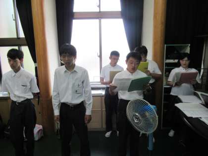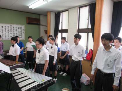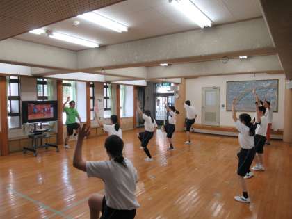 さて,今年度の鳴滝は,夏学習を実施せず,部活動を実施しています。今日は,2つのクラブが活動をしていました。気温が高いことや,生徒たちが公共の交通機関を使って登校していることから,冷房の効いた部屋での活動としています。ダンス部は,参加するイベントにむけての練習をしています。音楽部は学校祭で発表する楽曲の練習をしていました。