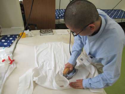 9月中旬から始まったクリーニング師試験の取組も続いています。今日はアイロンの練習をしているところをアップします。アイロンは,カッターシャツを濡れた状態から,10分でアイロンをかけて,乾いていて,たたみまで仕上げるというものです。試験まで残り1か月を切り,学習にも熱が入ってきたのではないでしょうか??全員の合格を目指してがんばっていきましょう。