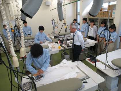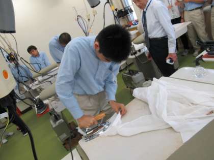 今日は,近づいてきたクリーニング師試験のため,実地試験である洗濯物の仕上げ技術(アイロン)をみんなに披露する公開練習をいたしました。本番でも,人の目がある中,緊張と闘いながら乗り越えていかなければなりません。学校でも緊張と闘う場として設定しています。本番は,10月21日の午前中になります。今日もみんな頑張っています。