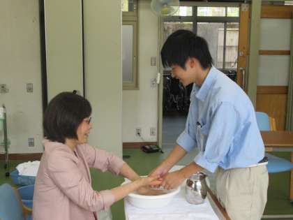 福祉・介護では,手浴に取り組んでいました。
