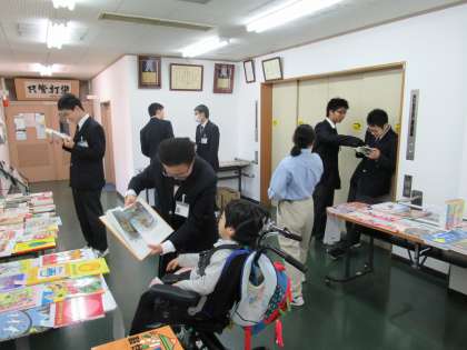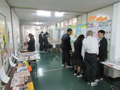 本館2階の廊下には,ところ狭しと本が並んでいます。日頃,図書に親しみのある児童生徒も,あまり親しみのない児童生徒も,この機会に本を読んでいる姿が見受けられました。児童生徒,教職員の集計結果が楽しみです。
