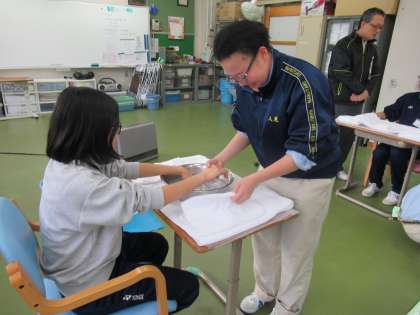今日は,東山総合より,2名の生徒さんが,本校の福祉で行っている「手浴」を学びに来られました。初めは緊張していた生徒さんたちでしたが,専門教科「福祉・介護」で学習している生徒が実演しながら,コミュニケーションを図ることで,終始,和やかに取り組んでいました。東山総合では,喫茶で「手浴」を提供するために学習していると聞きました。お互いにすごく良い刺激を受けて,有意義な時間となりました。