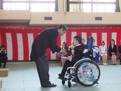 晴天に恵まれた今日,鳴滝総合支援学校では中学部の卒業証書授与式を挙行いたしました。昨年度は中学部の卒業式はありませんでしたが,今年度は中学部1名が卒業いたします。今日は,朝から緊張していたようですが,胸を張って,立派な態度で式に臨んでいました。卒業おめでとうございます。高等部でもたくさん学習して,楽しく学校生活を送れるように頑張っていきましょう。