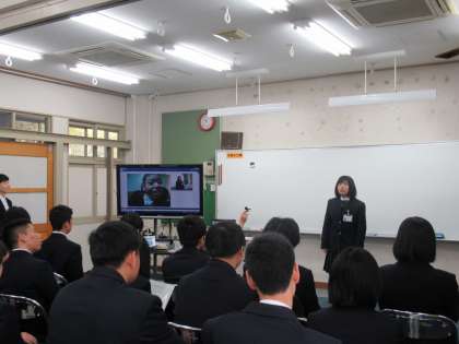生活産業科2年生は,学年集会の中で進路担当から進路講話を受け,2年生の実習に向けての話や卒業後の就労につなげることの大切さなどを学びました。