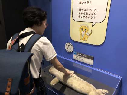 特別展示グループは「大哺乳類展」を見学し,たくさんの「はく製標本」に間近で触れることができました。