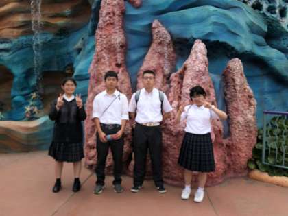 「七夕グリーティング」のパレードがありました。七夕の飾りつけをした船に乗って,キャラクターたちが手を振ってくれました。まさに「夢の国」です。