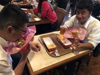 ハンバーガーや冷やし麺,チキンなど,好きなメニューを選びおいしくいただいています。活動は,ほぼ計画通りに進んでいるようです。