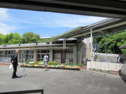 今日は,今後届けていく「鳴滝 教職員からの動画」を撮影する様子が,あちらこちらで見られました。