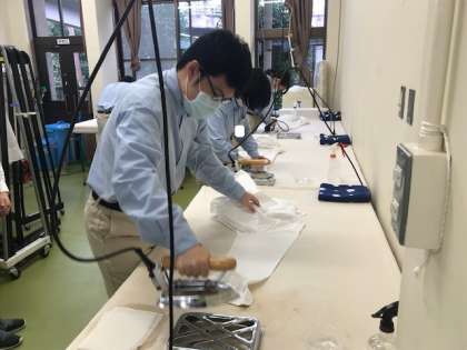 実地試験に向けてカッターシャツのアイロン仕上げの練習をしたり,学科試験対策として復習を行いました。