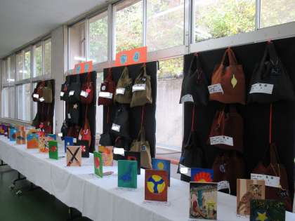 北校舎ではマスク美術館のほか,児童生徒の作品が展示されています。