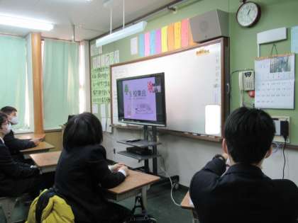児童生徒会本部役員の司会のもと,冬季休業前の全校集会をオンラインで行い,学校長からこれまでの学校生活の振返りや,休み中の健康管理について話がありました。また各専門委員会からも,報告や休み明けの活動について連絡がありました。