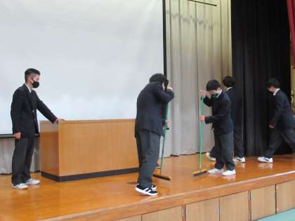 明日の入学式に向けて,生活産業科2・3年生で準備をしました。すみずみまできれいに清掃したり,式場を整えたりしました。あとは明日の入学式を待つのみとなりました。