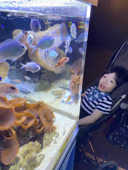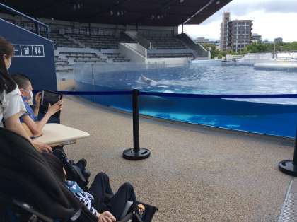 アーチ状の入口を潜り抜けると,たくさんのミズクラゲが漂う幻想的な水中空間が広がりました。まるでクラゲと一緒に海に浮かんでいるような気持ちになり,リラックスして過ごすことができました。交流プラザでは,サンゴ礁のいきものたちが展示されていました。ゆらゆらと体を揺らすチンアナゴや,色とりどりの魚を見ることができました。イルカスタジアムでは,イルカがショーの練習をしている姿を見学しました。