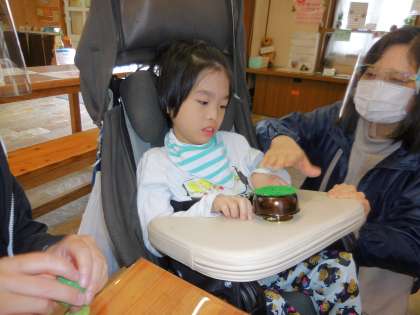 オルゴール作りでは自分の好きな曲,オルゴールにつけるパーツを選び,自由にくっつけて完成させました。曲は「やさしさに包まれて」を選びました。朝の会で毎日聴いている曲で,オルゴールのきれいな音色に耳を傾けている様子がみられました。