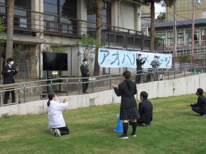 昼休みには,児童生徒会主催の「青春(アオハル)メッセージ」がグラウンドで行われました。