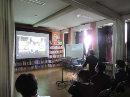 午後はオンライン映画祭が行われました。高等部1年生は「鳴滝あるある」のタイトルで,学校生活のあるあるを発表しました。先輩たちも,こんなことがあったなあと懐かしんでいた様子でした。高等部2年生は「ここは今から道徳です。」のタイトルで,どうしようかと悩んでしまう場面を再現し,自分ならこう解決していくかなと,深く考えることのできる内容の発表でした。