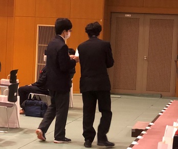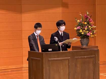 第2部では,本校の生徒が京都市の総合支援学校の進路の取組について紹介した後,「実習の受け入れ雇用1年目を終えて」をテーマに講師の方を招いて講演がありました。また,閉会挨拶を,本校の玉梶校長がされていました。