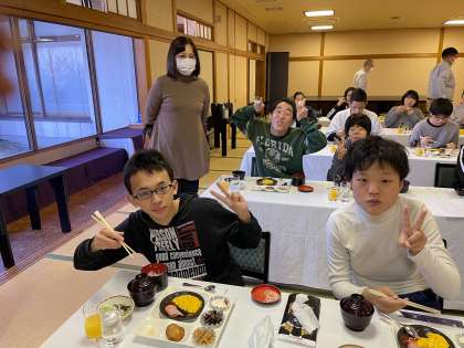 おはようございます!昨夜は早くに全員就寝し、今朝も元気に朝食をいただいています!
