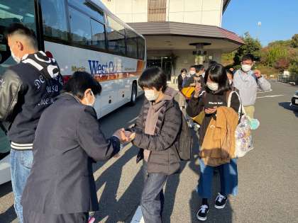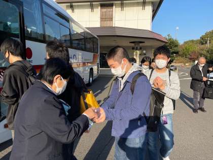 部屋を片付け、消毒を済ませてからバスに乗り、瀬戸大橋を渡りました。大きな橋を目の前にして、少しウトウトしていた人も目がぱっちり!瀬戸大橋タワーに向かっています。