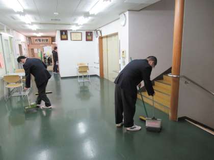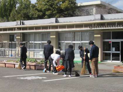 明日の第45回 卒業証書授与式に向けて,生活産業科1,2年生のみんなで体育館や校舎内外の清掃,飾りつけを行いました。