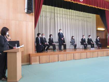 校長先生から一人一人の紹介があり,そのあと皆さんからご挨拶いただきました。「毎日 児童生徒のみんなから,笑顔と元気をもらいました。」「お互いの良さを認め合える学校でした。」「何気ない普通の毎日が思い出に残っていて,これからも一日一日を大事にしていきましょう。」など,一緒に過ごした日々の思い出も含め,心のこもったメッセージをもらい,児童生徒も聞き入っていました。