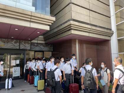 時間より早めに集合完了。修学旅行の約束ごとをみんなで確認して、まもなくバスに乗り込みます!
