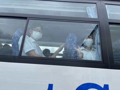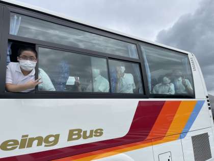 バスでは、今のうちに体力を蓄えておこうと(?)、たくさんの人が寝ていました。