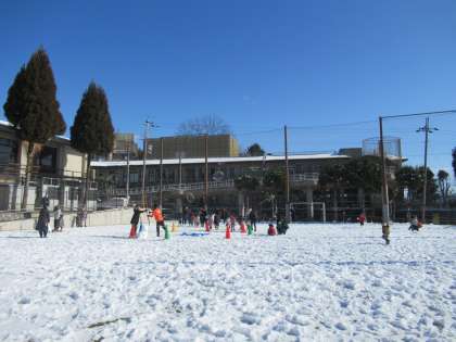 今日は天気も良く、御室幼稚園の園児が来てくれました。雪の積もる芝生のグラウンドでしたが、園児たちは元気よく楽しそうに活動していました。
