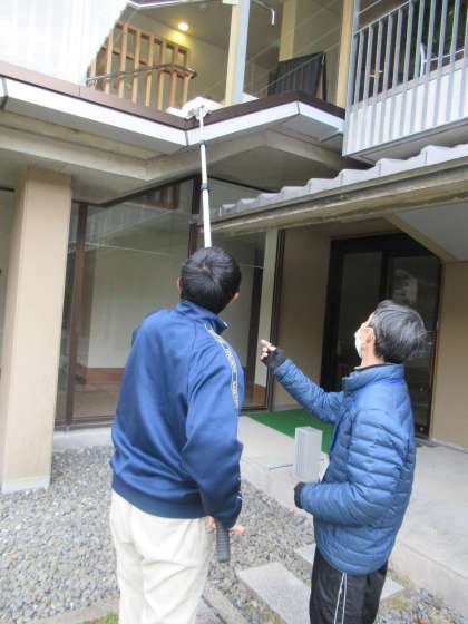 宇多野ユースホステル様にて校外演習を行いました。12月になり気温も低くなりましたが、生徒たちはきびきびとそれぞれの分担場所の清掃に励んでいました。会計年度任用職員の先生から、細かい箇所を見逃すことなく清掃するように指導を受け、用具操作のコツを教えていただきました。