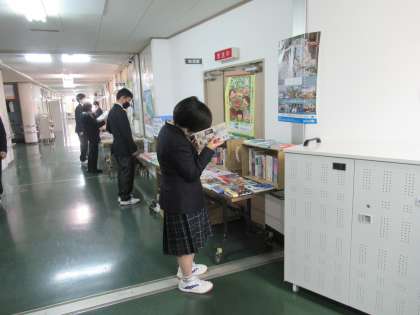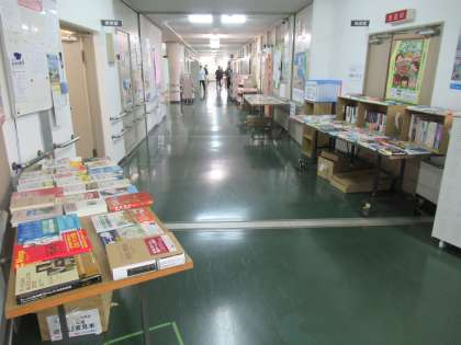今後図書室に置きたい図書を選ぶもので、本館2階の廊下には数百冊の図書が所狭しと並んでいます。図書に慣れ親しみ、本や読書に対する関心を深めるという目的もあります。