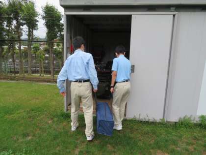 陸上記録会で使ったものを専門教科の2・3年生が片付けました。