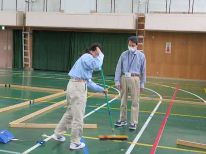 練習を重ねていくと、清掃をしている姿がどんどん格好よくなり、プロのように見えてきます。 ※写真は専門家の先生に教えてもらっているところです。