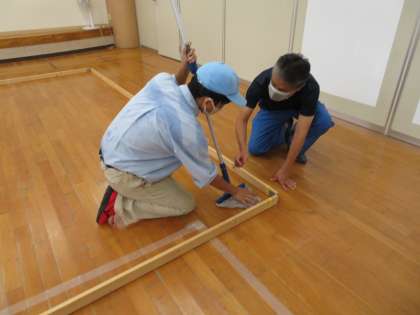 今日は、京都ビルメンテナンス協会の方が指導に来てくださり、床とカーペットの清掃練習の様子を見ていただきました。アドバイスをもらい、「次の練習日までに教えてもらったことをマスターしておきます」としっかり答えていました。