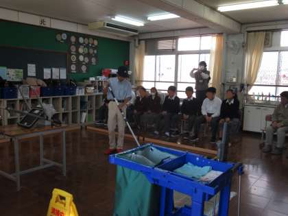 校内激励の会を終え、出場生徒の出身中学校である梅津中学校において、公開演習会を行いました。育成学級の生徒さんを前に、精いっぱいの実技を披露できました。