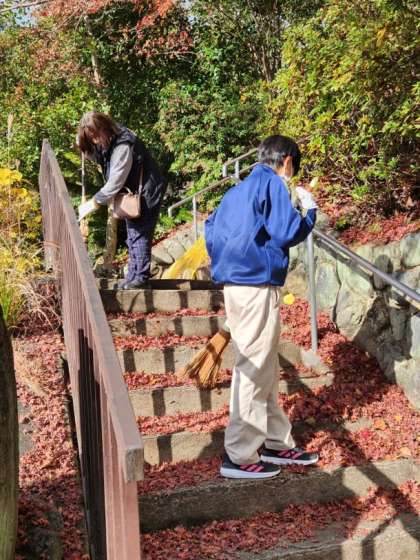 1年生が学校近くのお寺「大仙寺」へ清掃に出かけました。この時期は、落ち葉がいっぱいです。偶然、落ち葉掃きをされていたボランティアの方と出会いました。「一週間に一度は掃除に来るけれども、掃いてもすぐに落ちてくるから大変!」「掃除してもらって、とっても助かるわ。ありがとう!」と大変喜んでいただきました。みんな今日のお天気のように、ぽかぽかとした気持ちで学校に帰ってきました。