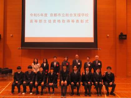 2月21日、「総合支援学校高等部資格取得表彰」が行われました。本校から、生活産業科3年生10名の生徒が表彰されました。