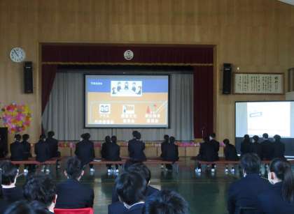 その後、映像や実演で学校紹介・部活動紹介があり、工夫が凝らされた紹介に、新入生も見入っている様子でした。
