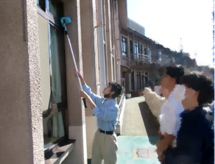 本校の清掃スキルを学ぶため、東山総合支援学校の1年生
