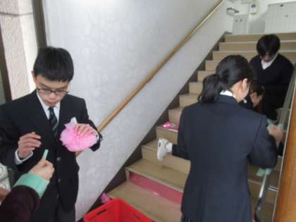 卒業証書授与式を明日に控え、在校生は式の準備をし