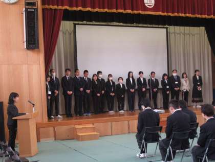 着任式では今年度着任した17名の教職員の紹介のあと、児童・生徒代表より気持ちのこもった歓迎の言葉がありました。