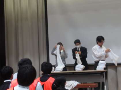 児童生徒会の生徒が中心となり新入生歓迎会がおこなわれました。新入生の自己紹介の場面では自分の趣味や鳴滝総合支援学校で頑張りたいことなどを一人ずつ発表することができていました。また上級生は翌日から体験が始まる専門教科で学ぶことをクイズにして出題しました。これからも様々な場面で学年を超えた交流をおこなっていきます。