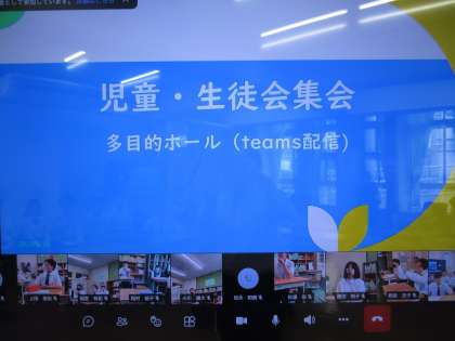夏季休業期間が終わり最初の全校集会をおこないました。夏季休業は終わりましたがまだまだ、気温は高いのでオンラインでの全校集会でしたが、校長先生の話や前期後半の予定など、集中しながら聞いていました。